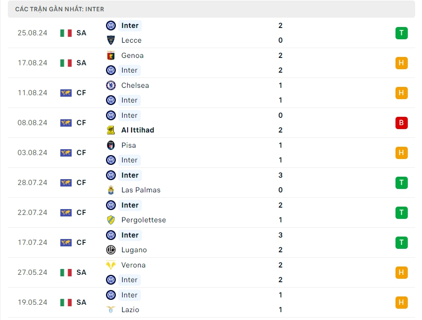 -Phong độ Inter Milan
