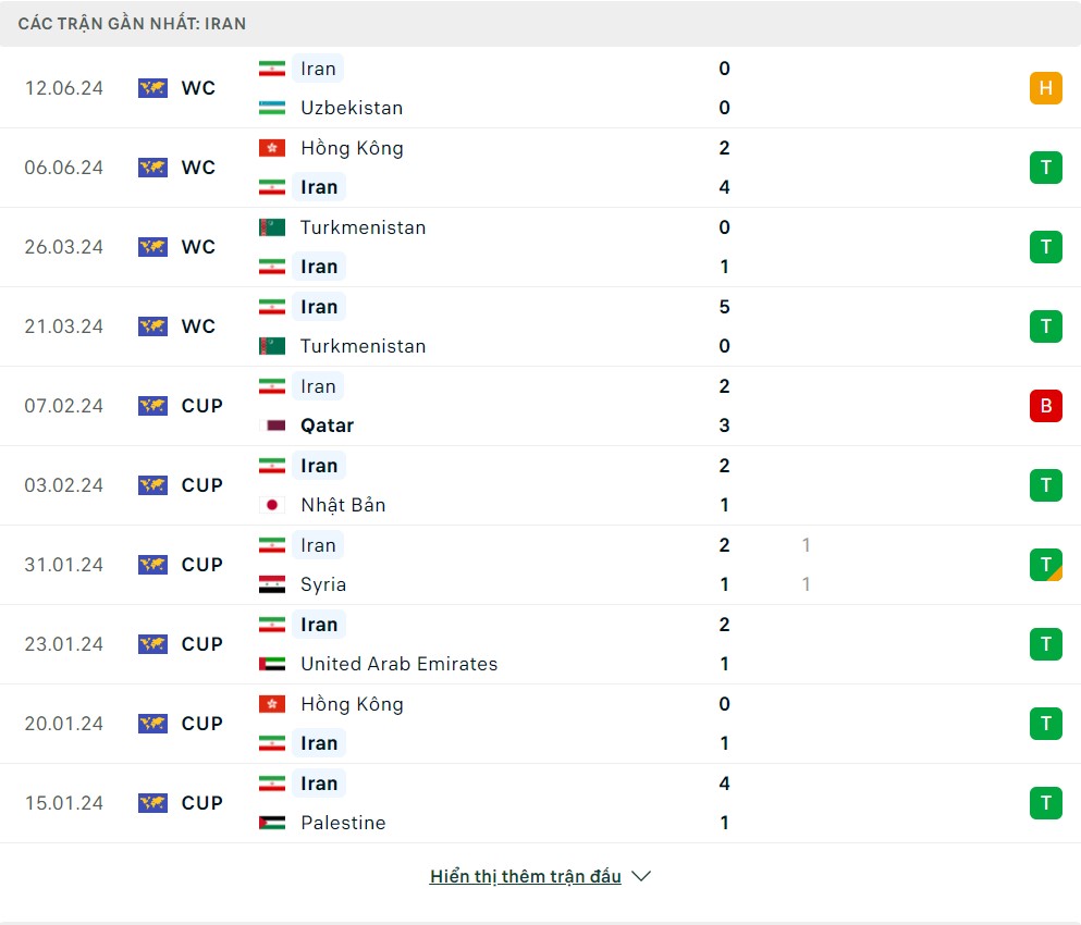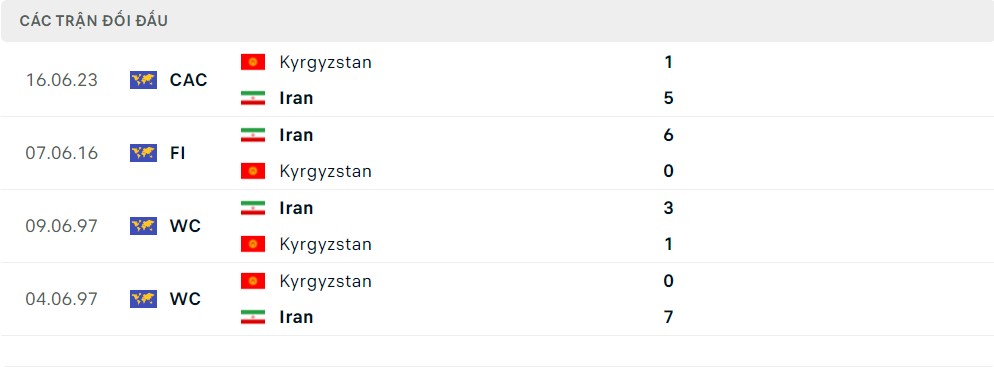 Lịch sử thi đấu của Iran vs Kyrgyzstan