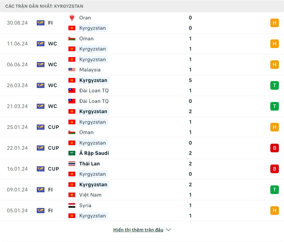 -Phong độ Kyrgyzstan