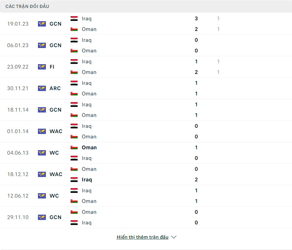 Chỉ tính trong thời gian thi đấu chính thức, những trận đấu giữa Iraq và Oman luôn diễn ra với đầy toan tính đến từ cả đôi bên. Thậm chí thống kê còn chỉ ra cả 10 lần gặp nhau gần nhất chứng kiến không quá 2 bàn thắng được ghi. Tính chất của một trận ra quân cùng tâm lý không muốn sắm vai kẻ chiến bại của cả hai bên cũng báo hiệu kịch bản khan hiếm bàn thắng ở cặp đấu này.