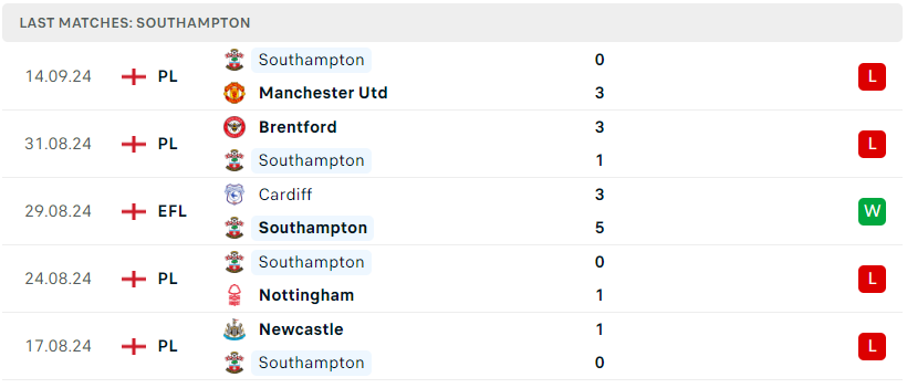 Trong số 3 tân binh lên hạng ở mùa giải năm nay, Southampton cùng Leicester City chính là hai đối thủ quen mặt, dù vậy nhưng điều này không thể giúp The Sains có khởi đầu quá tốt khi họ đã toàn thua ở cả 4 vòng đấu. Đáng nói, cả 4 thất bại này đều cùng kịch bản rất áp đảo và đoàn quân Russell Martin hiện đã để lọt lưới đến 8 bàn. Rõ ràng là đội chủ sân St Mary’s đang gặp vấn đề và nếu cứ thi đấu trong sự yếu kém này thì mọi nổ lực của họ từ mùa giải trước chắc chắn sẽ “đổ sông đổ biển”.