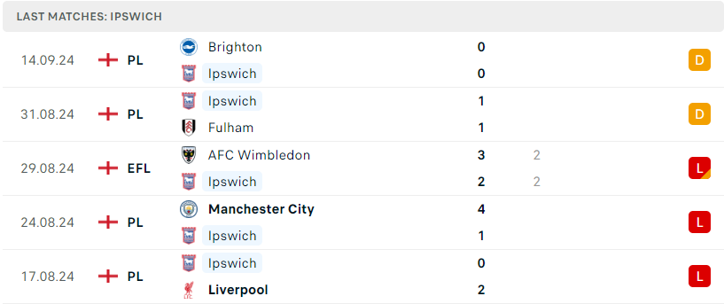Lịch sử thi đấu cũng đang ghi nhận là sự nhỉnh hơn dành cho đội bóng có biệt danh là The Tractor Boys, khi họ đã thắng 2 trận đấu gần nhất và bất bại 4/5 trận đấu. Đây sẽ là nguồn động lực lớn cho Ipswich trong cuộc đối đầu sắp tới, khi họ có thể tự tin tiếp tục duy trì chuỗi thành tích ấn tượng trước đối thủ quen thuộc.