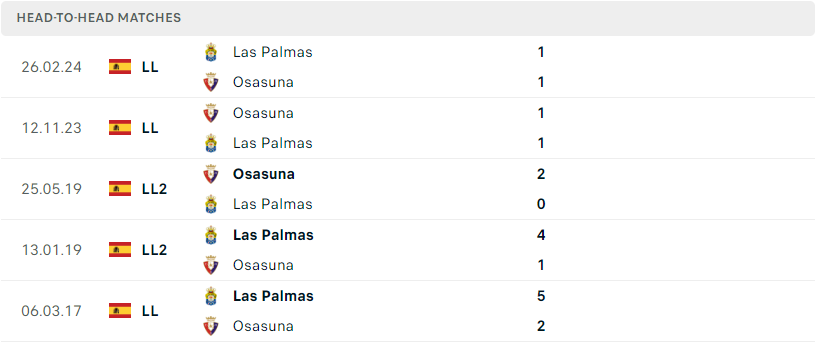 Thành tích đối đầu của Osasuna vs Las Palmas