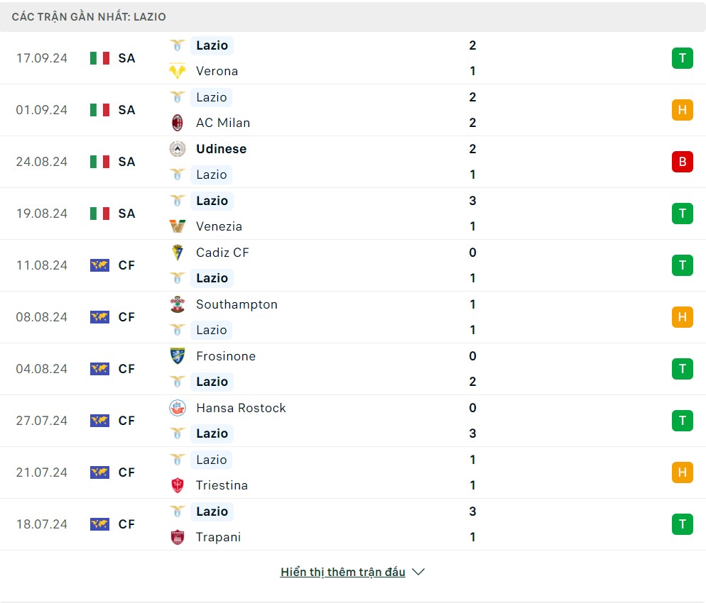 -Phong độ Lazio