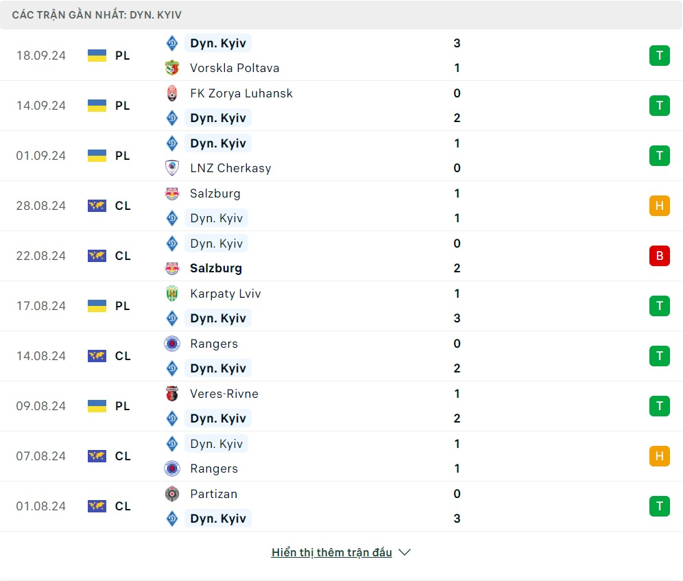-Phong độ Dinamo Kiev