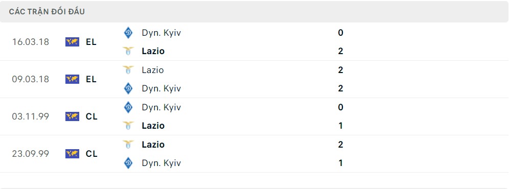 Lịch sử thi đấu của Dinamo Kiev vs Lazio