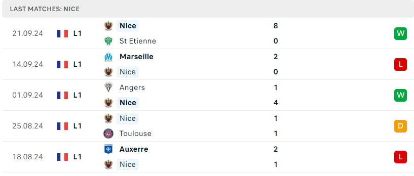 Phong độ của Nice