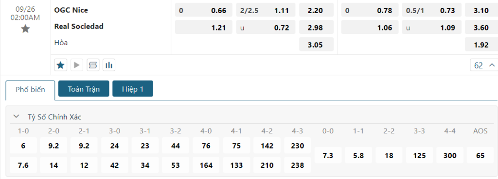 Soi kèo tỉ số Nice vs Real Sociedad