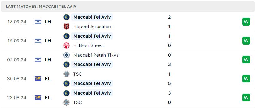 Phong độ của Maccabi Tel Aviv