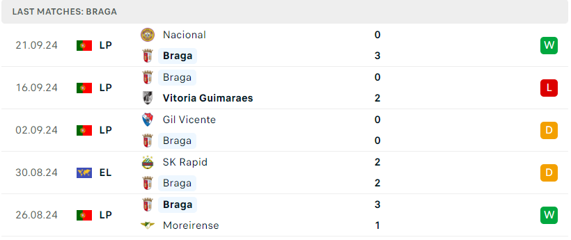 Sau khi xuất sắc vượt qua 3 đối thủ tại vòng loại, Braga đã chính thức có mặt tại vòng bảng Europa League. Nhìn chung, phong độ của đại diện Bồ Đào Nha đang là khá tốt, trong 12 trận đấu từ đầu mùa thì thầy trò Carlos Carvalhal chỉ phải nhận về duy nhất 1 thất bại. Dưới sự dẫn dắt của HLV đầy tài năng này, Braga đang trình diễn một lối chơi đầy hiệu quả mà cũng không kém phần chắc chắn. Ở 4 trận đấu gần nhất tại giải quốc nội họ chỉ để lọt lưới 1 bàn.