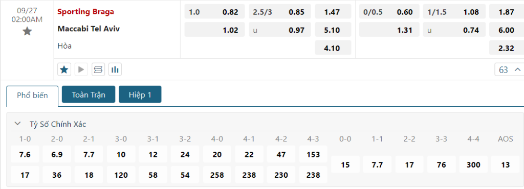 Soi kèo tài xỉu Braga vs Maccabi Tel Aviv