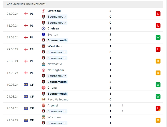 Bournemouth vừa nhận thất bại 0-3 trước Liverpool, đây là trận thua thứ 2 liên tiếp của họ, sau 5 vòng đấu với 1 chiến thắng, 2 hòa cùng 2 thất bại thì Bournemouth có cho mình 5 điểm và đang xếp vị trí thứ 13 trên BXH, hàng công của chủ nhà mang về 5 bàn thắng, cùng hàng thủ nhận 8 bàn thua, 3/5 trận đấu đó khép lại 90 phút không quá 2 bàn thắng, trên sân nhà của mình, hàng công của Bournemouth có được 1 bàn thắng cùng 2 bàn thua phải nhận sau 2 lượt trận, cả 2 trận đều không vượt mốc 2 bàn.