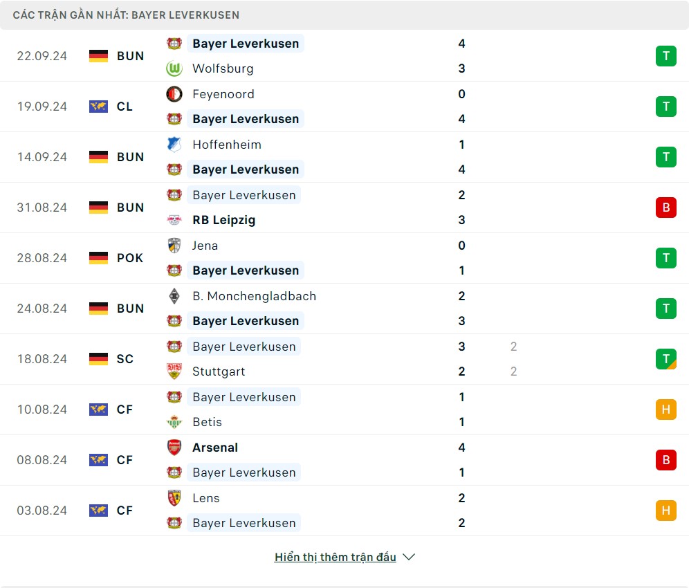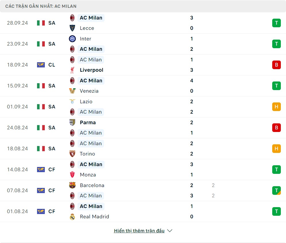 Phong độ đội bóng Bayer Leverkusen vs AC Milan