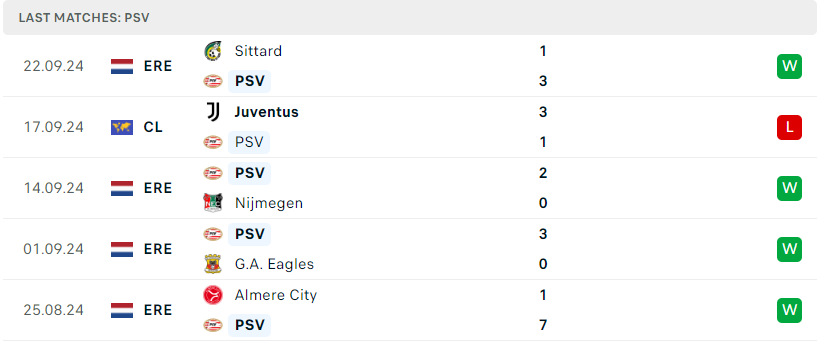 Phong độ của PSV Eindhoven