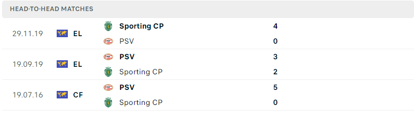 Thành tích đối đầu của PSV Eindhoven vs Sporting Lisbon