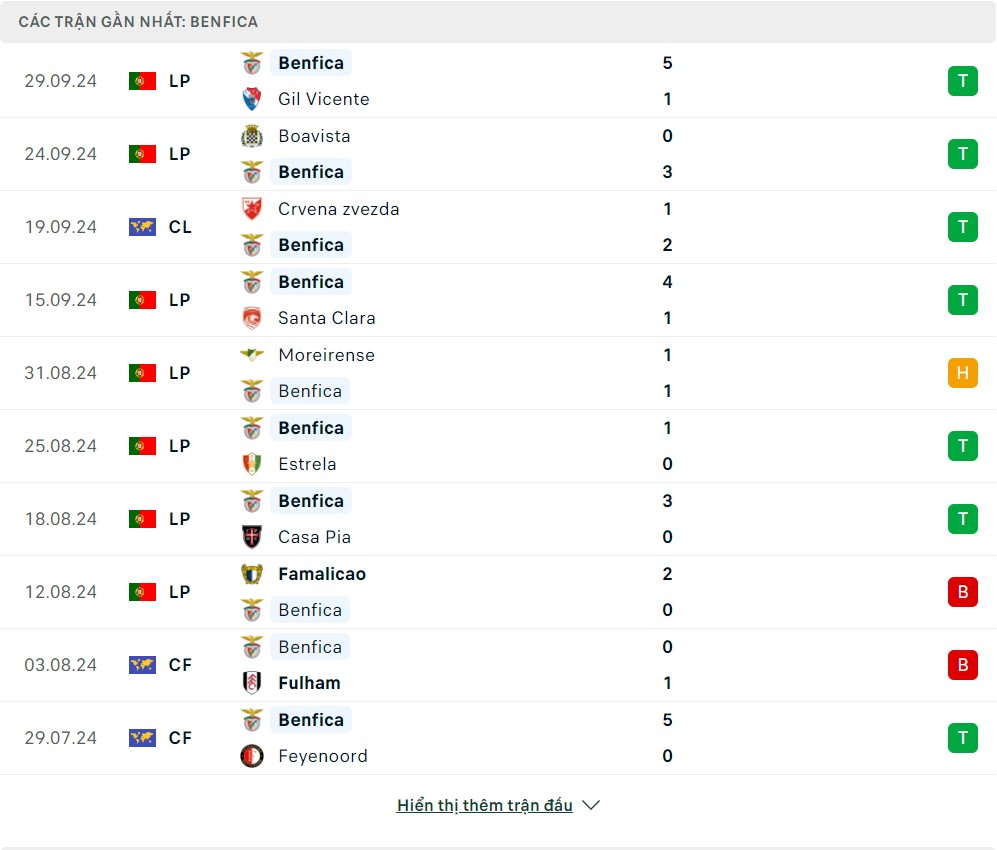 Từ giao hữu (1) đến những lần so tài ở cúp châu Âu (2), 3 lần đụng độ trước đây giữa Benfica đều chứng kiến nhiều hơn 2 lần lưới rung. Với sự ổn định ở khâu ghi bàn của chân sút hai bên sau chặng đường đã qua của chiến dịch 2024/25, kịch bản này rất có thể sẽ được tái hiện trên sân da Luz.