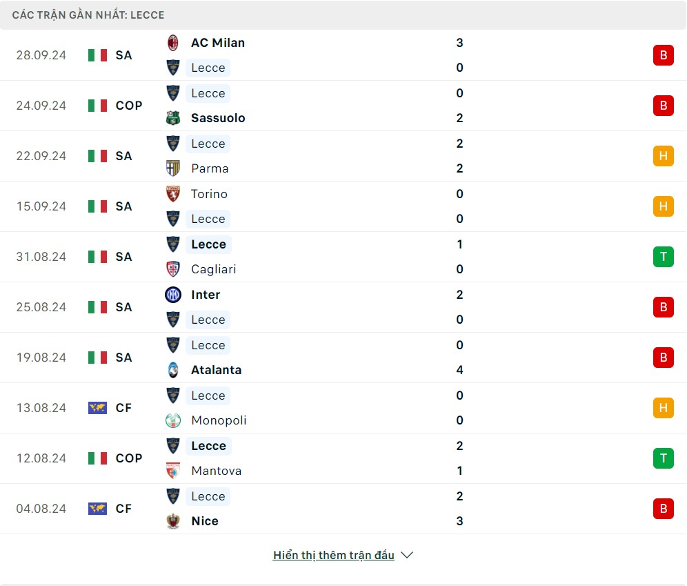 -Phong độ Lecce