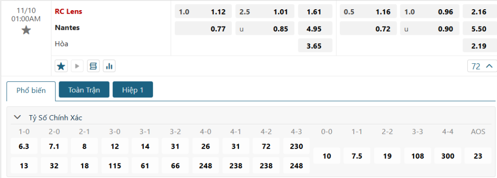 Soi kèo Châu Á, kèo chấp Lens vs Nantes