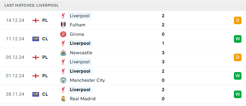 Bên kia, Liverpool đã lột xác hoàn toàn dưới thời Arne Slot và hiện là ứng cử viên số 1 cho chức vô địch. Trận hòa trước Fulham ở vòng đấu trước đánh dấu chuỗi 19 trận bất bại liên tiếp trên mọi đấu trường của họ. Tại EPL, The Kops hiện cũng đang dẫn đầu với 2 điểm nhiều hơn Chelsea và vẫn còn 1 trận chưa đá. Lối chơi của Liverpool ngày càng được hoàn thiện và hiệu quả. Tuy nhiên, đây mới chỉ là giai đoạn lượt đi và The Kops vẫn còn rất nhiều thử thách phía trước và trận đấu tới là một trong số đó.
