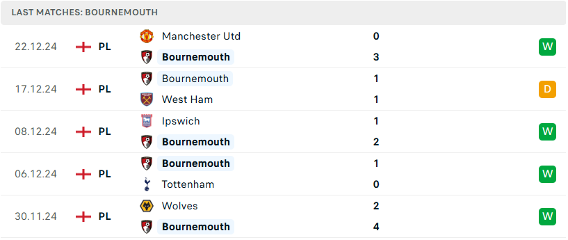 Chiến thắng 3-0 trước Manchester Utd vào cuối tuần qua tiếp tục minh chứng cho sự ổn định và tiến bộ của Bournemouth. Sau trận đấu với Crystal Palace vào ngày Boxing Day, The Cherries sẽ hành quân đến sân của Fulham chỉ 3 ngày sau đó. Fulham hiện đang trong chuỗi phong độ không mấy ấn tượng, điều này mở ra cơ hội tuyệt vời để Bournemouth tận dụng và tiến gần hơn đến vị trí trong top 4.