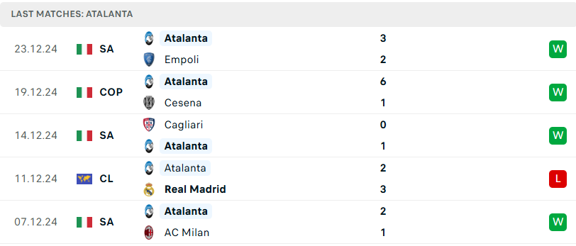 Dù lịch sử đối đầu giữa hai đội đang khá cân bằng với 2 chiến thắng và 1 trận hòa chia đều trong 5 lần gặp nhau gần nhất, nhưng đó là câu chuyện của quá khứ khi Atalanta chưa đạt đến đỉnh cao như ở mùa giải năm nay. Với phong độ chín muồi của các trụ cột và lối chơi đầy hiệu quả, đội khách nhiều khả năng sẽ biết cách tận dụng lợi thế để giành kết quả có lợi.