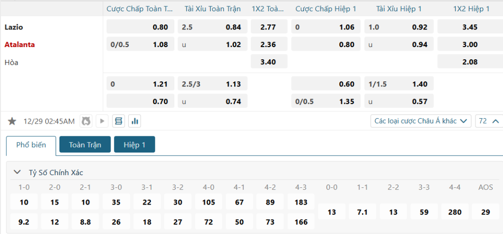 Soi kèo Châu Á, kèo chấp Lazio vs Atalanta
