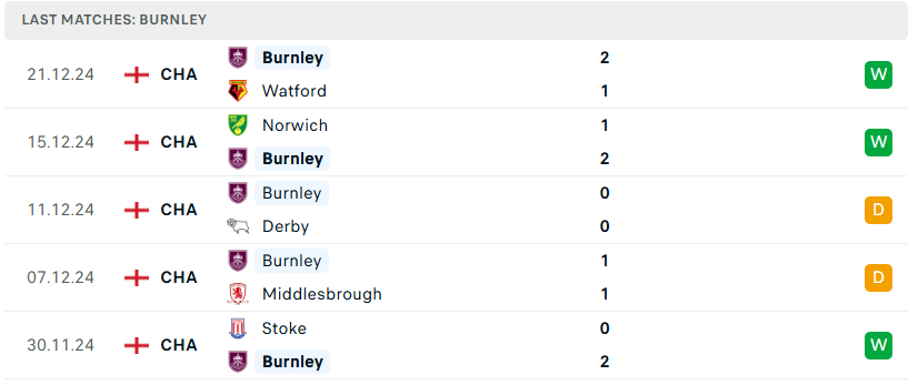 Bên kia, sau mùa giải thi đấu bết bát và phải nhanh chóng nói lời chia tay Premier League, Burnley lại cho thấy sức mạnh vượt trội khi trở lại Championship. Từ đầu mùa, “The Clarets” chỉ phải nhận 2 thất bại và đã bất bại trong 20 trận còn lại. Ngoài ra, sự chắc chắn của họ cũng được thể hiện rõ khi chỉ để thủng lưới 9 bàn. Việc bổ nhiệm Scott Parker vào mùa hè đã giúp đội chủ sân Turf Moor hồi sinh. Tuy nhiên, những khó khăn vẫn còn rất nhiều và chuyến đi tới sẽ là một trong số đó.