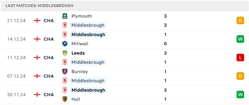 Mùa giải năm nay tiếp tục chứng kiến sự lớn mạnh không ngừng của Middlesbrough. Trận hòa 3-3 trước Plymouth ở vòng đấu gần nhất đánh dấu trận bất bại thứ 8 trong 10 vòng đấu gần đây của “The Boro”. Ngoài ra, đội chủ sân Riverside hiện đang nằm trong top 6, một vị trí đủ để họ nuôi hy vọng lớn cho chặng đường còn lại. Nếu duy trì được phong độ này, họ chắc chắn sẽ là một ứng viên khó lường trong cuộc đua giành vé thăng hạng và trận chiến với Burnley sẽ là bài test cần thiết cho họ.