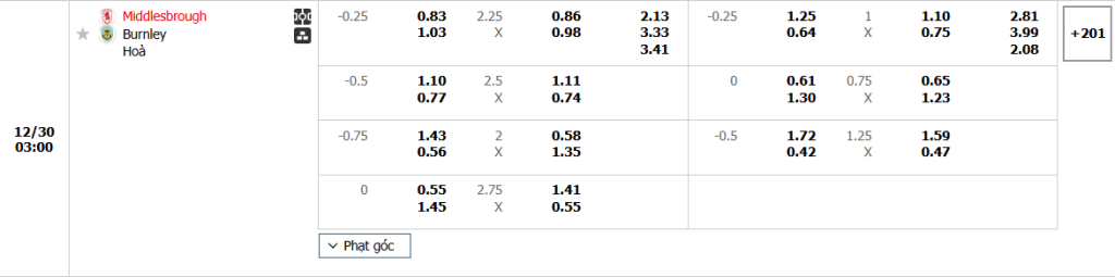 Soi kèo Châu Á, kèo chấp Middlesbrough vs Burnley