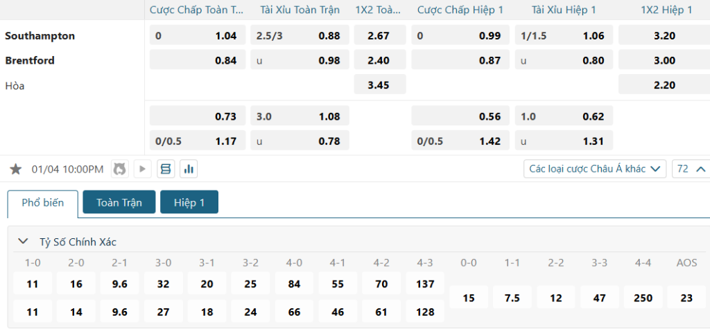 Kèo Châu Âu đang là sự ưu ái cho Brentford, với tỷ lệ ăn là 2.40, trong khi của Southampton là 2.67. Tuy nhiên, sự chênh lệch này không đáng kể. Với bối cảnh Southampton vừa thay tướng và có sự cải thiện trong lối chơi, cộng thêm lợi thế sân nhà, họ hoàn toàn có thể giành điểm trước Brentford trượt dài. Kịch bản Southampton có ít nhất 1 điểm trong trận đấu này là hoàn toàn khả thi.