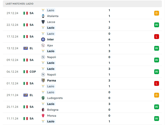 Bên kia chiến tuyến, Lazio họ vừa có trận hòa trước Atalanta, đây là trận hòa thứ 2 của họ sau 18 trận đấu, cùng với 11 chiến thắng và 5 thất bại, có được 35 điểm và đang xếp vị trí thứ 4 trên BXH, hàng công của Lazio có được 33 bàn thắng cùng hàng thủ nhận 25 bàn thua, khi thi đấu xa nhà, hàng công của Lazio có được 15 bàn thắng cùng hàng thủ nhận 12 bàn thua, 2/3 trận xa nhà vừa qua của Lazio cũng không quá 2 bàn được tạo ra.