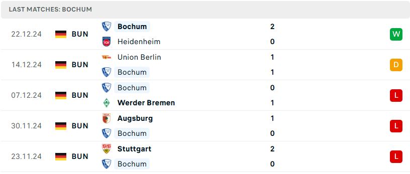 Phong độ của Bochum