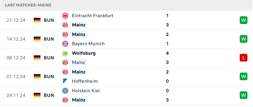 Kể từ khi bổ nhiệm Bo Henriksen lên băng ghế chỉ đạo, Mainz dường như đã lột xác hoàn toàn, trở thành một đội bóng đầy kỷ luật và thi đấu cực kỳ chắc chắn. Cụ thể, sau 15 vòng đấu, Mainz đã giành được 7 chiến thắng, 4 trận hòa, và chỉ để thua 4 trận. Với 25 điểm hiện tại, họ chỉ còn cách top 4 của Leipzig đúng 2 điểm. Đà thăng hoa này hứa hẹn sẽ được Mainz duy trì và phát huy, đặc biệt là khi đối thủ sắp tới chỉ là Bochum – một cơ hội không thể tốt hơn để họ tiếp tục bám đuổi nhóm dẫn đầu.