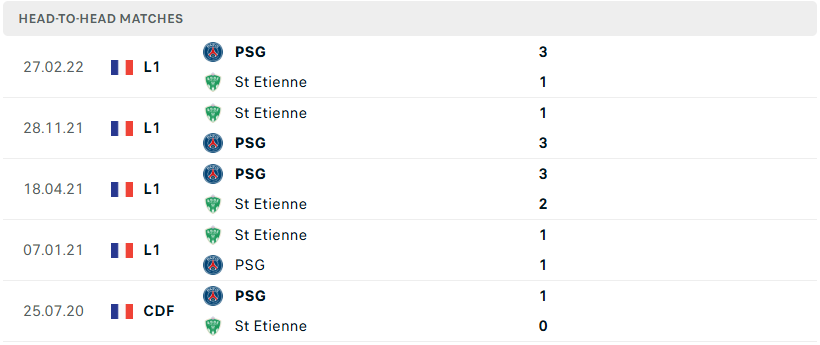 Lịch sử thi đấu cũng đang ghi nhận là sự vượt trội hoàn toàn cho PSG, khi trong 5 lần gần nhất đụng độ đối thủ họ chưa xảy ra bất cứ sai số nào với 4 chiến thắng cùng 1 trận hòa. Dù Saint Etienne cũng vừa cho thấy đôi chút sự khởi sắc, nhưng chừng đó thôi chắc chắn là chưa đủ để đánh bại ‘nhà vua’ của Ligue 1. Một thế trận một chiều sẽ bóp nghẹt vị khách và họ đành ngậm ngùi nhận trái đắng ra về.